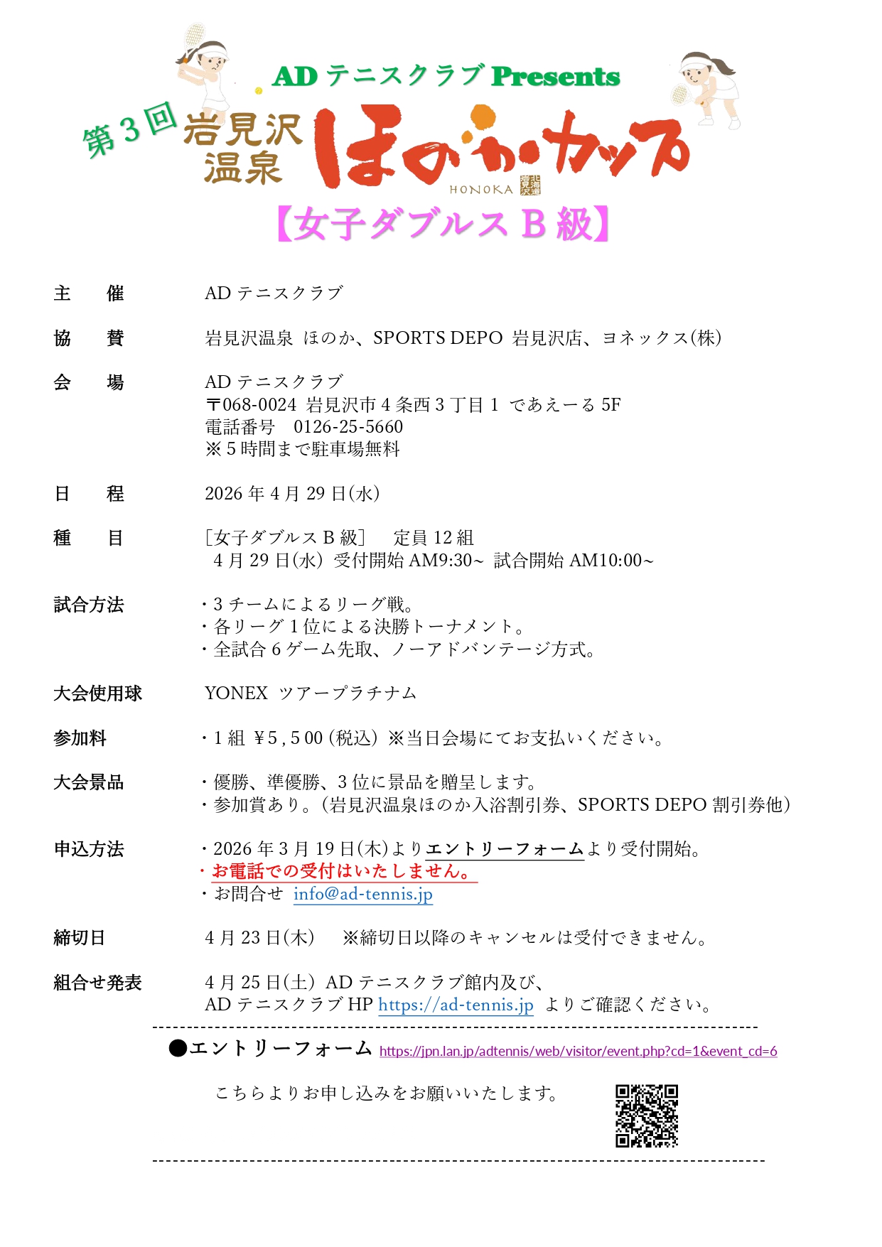 会員の方は「サービスエース」より3月19日(木)からお申込みできます。  https://jpn.lan.jp/adtennis/sp/login.php