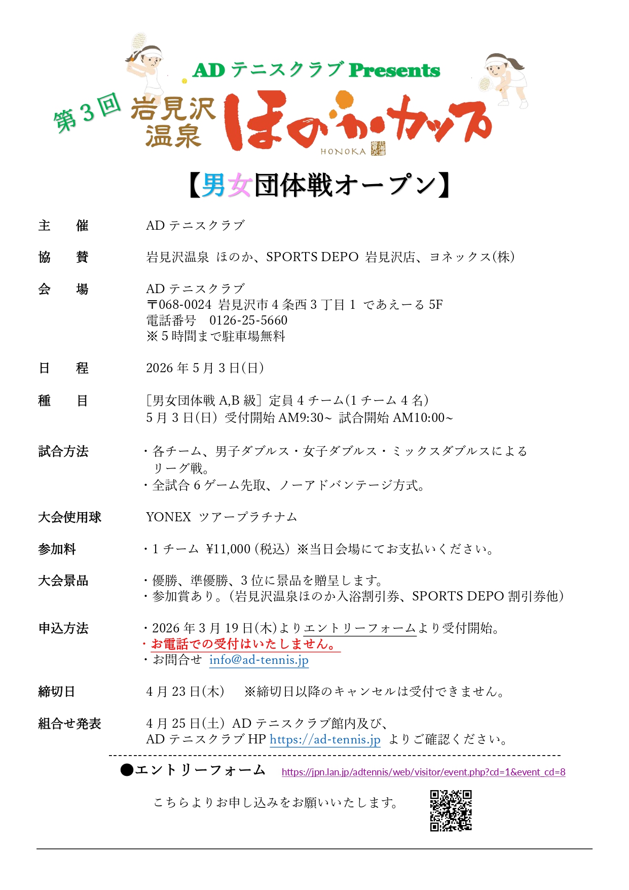 ほのかカップ男女団体戦オープン 5月3日(日)